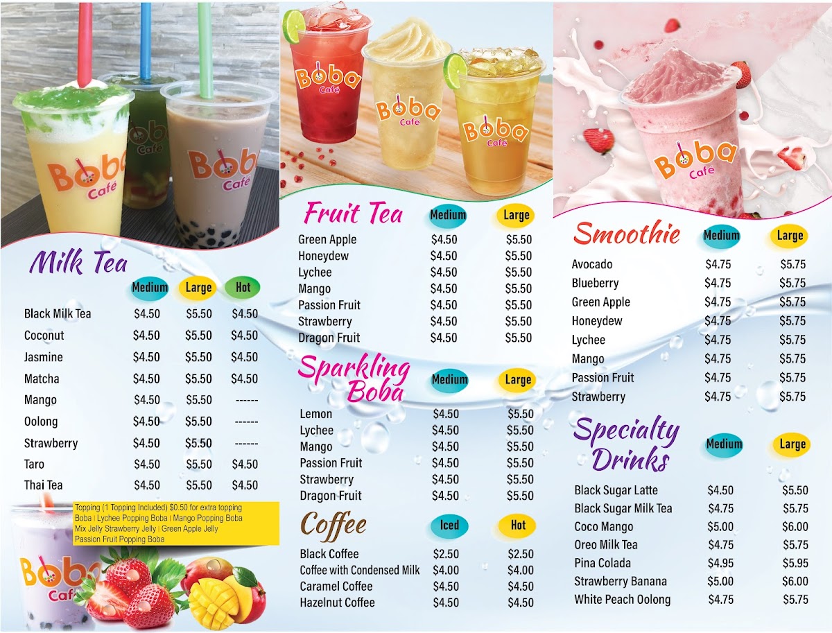 Welcome to Boba Cafe, a delightful corner located at 4006 Ventnor Ave, Atlantic City. Here, the offerings are as vibrant as the atmosphere. The menu shines with an array of specialty drinks, including the indulgent Coco Taro and the refreshing Strawberry Peach Black Tea, each priced affordably. For fruit enthusiasts, the Mango Fruit Tea and Dragon Fruit Tea are perfect options, both at just $5.95.